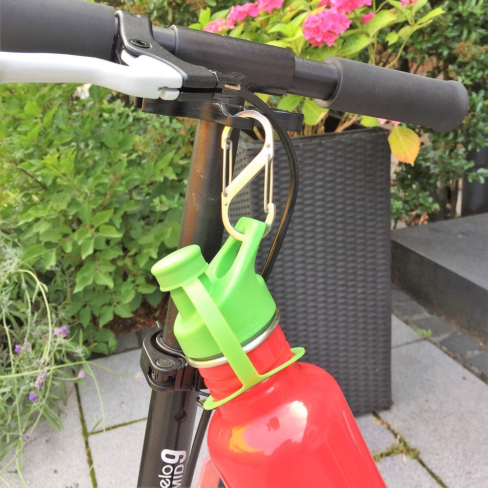 Du möchtest die Trinkflasche am Rucksack, Roller oder Kinderwagen befestigen? Dann bestell' den ultrapraktischen Karabinerhaken von Klean Kanteen dazu.