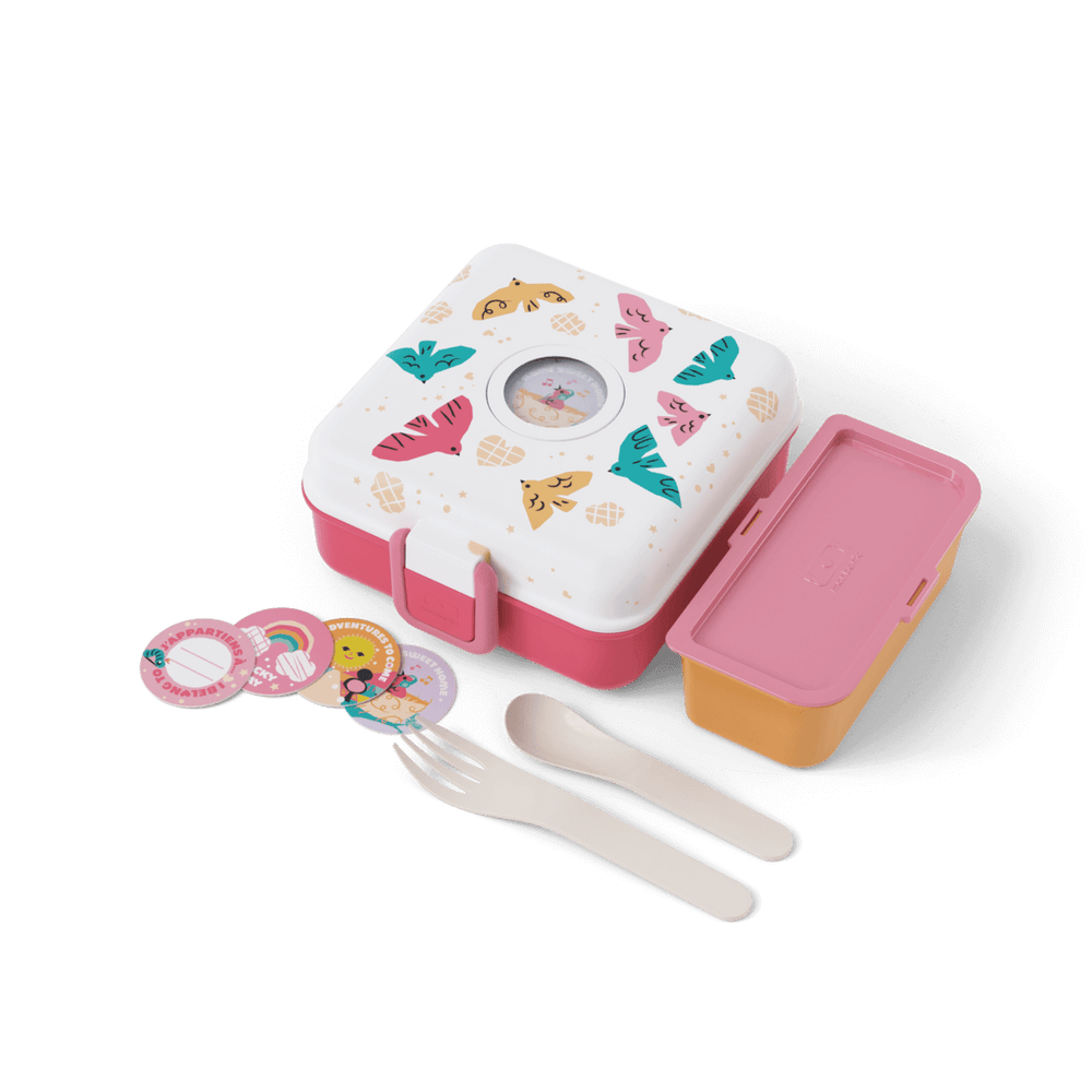 Dank der Individualisierungsfunktion auf dem Deckel kannst Du Deinen Lieblingssticker aus den 4 mitgelieferten auswählen und so Deine Bento Brotdose einzigartig machen. Du kannst sogar Deinen Vornamen hinzufügen, damit sie in der Pause nicht vertauscht werden!