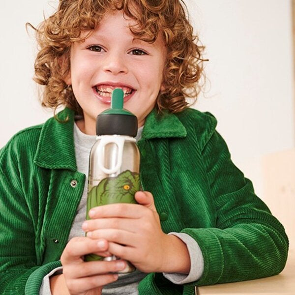 Da die Flasche auslaufsicher ist, kannst Du sie einfach schnell in die Tasche oder den Ranzen werfen. Auch Kohlensäure darf hier rein, nur solltest Du die Flasche dann nicht randvoll machen. Der Schraubverschluss hat eine kurze Drehung, sodass die Flasche schnell gut verschlossen ist.
