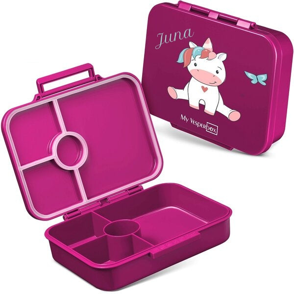 Der Verschluss lässt sich mit einem Klick kinderleicht öffnen, sitzt aber so fest, dass er nicht von alleine im Ranzen aufgehen kann. Gerne personalisieren wir Deine neue Lunchbox auch mit einem Namen. Das sorgt dafür, dass 1. Dein Schatz ein Unikat in der Hand hat und 2. die Brotdose schnell Deinem Kind zugeordnet werden kann. Und wenn Du sie darüber hinaus noch mit einem Motiv aufhübschen möchtest (Dino, Einhorn, Regenbogen, Fußball...), dann bestell gleich die wunderschönen Aufkleber von Jabalou dazu.
