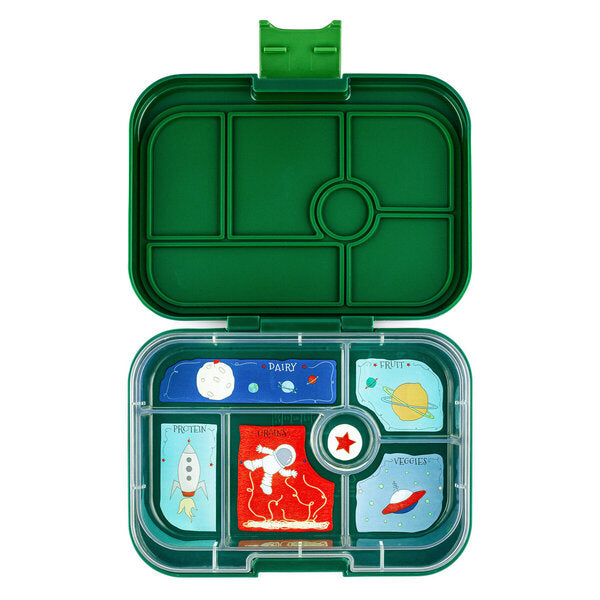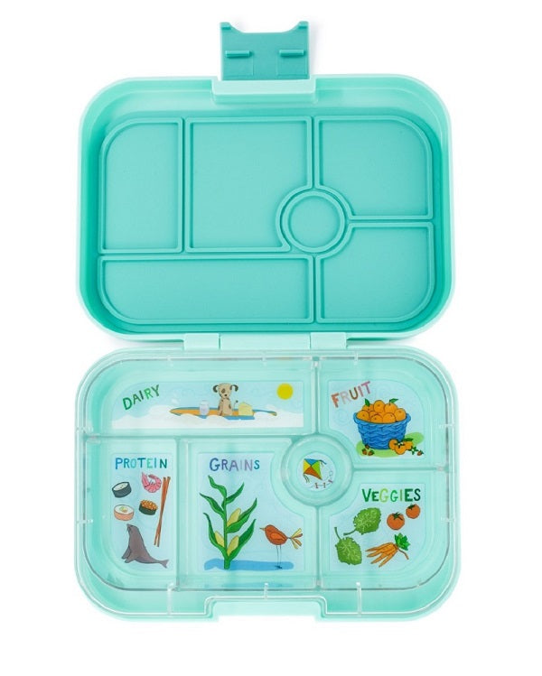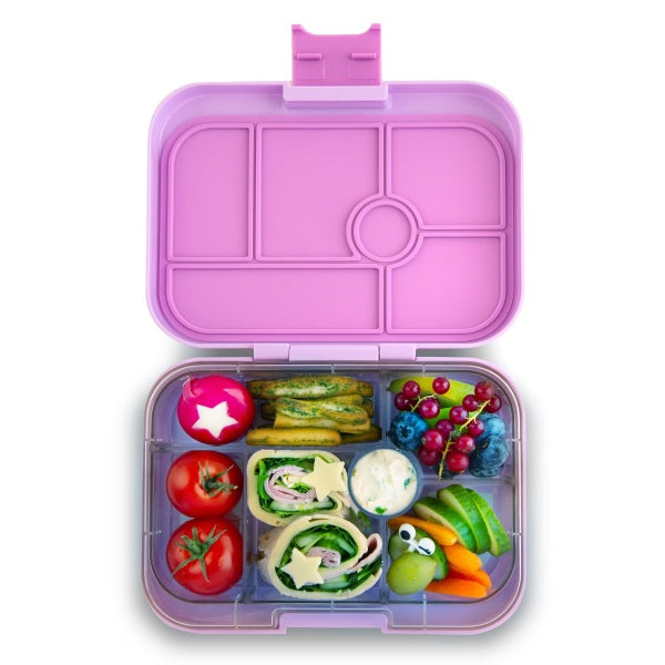 Entwickelt von 2 Müttern hat die Yumbox das Ziel, Spaß am Essen zu vermitteln, Nahrung sauber zu trennen und Flüssigkeiten wie dickflüssigen Joghurt auslaufsicher zu machen. Dazu kommt das schöne, farbenfrohe Design der Box. Die festen Fächer der Yumbox sind durch die jeweiligen Silikonabdichtungen an der Innenseite des Deckels separat abgedichtet. So sind alle Fächer individuell verschlossen und auslaufsicher. Dickflüssige Lebensmittel wie Joghurt oder Dips können eingefüllt werden, jedoch keine reinen Flüssigkeiten oder dünnflüssiges (die Fächer sind nicht wasserdicht.). Tipp: trockene nasses Obst gut ab, damit das Wasser nicht in die anderen Fächer läuft. Das Öffnen bzw. Schließen der Brotbox ist für Kinder kinderleicht zu bedienen, dennoch bleibt die Box gut verschlossen und geht nicht im Ranzen auf. Das Inlay der Brotdose zeichnet sich durch 6 feste Fächer aus und ist der Yumbox entnehmbar.