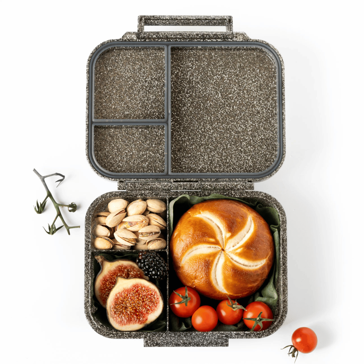Mit drei clever unterteilten Fächern bleibt alles dort, wo es hingehört: knuspriges Brot, buntes Obst oder Gemüse und leckere Snacks bleiben dank der Silikondichtung da, wo sie sein sollen – getrennt und sicher. Der herausnehmbare Trenner gibt Dir die Flexibilität, das große Fach zu unterteilen. Der Trenner ist so hoch, dass er bis zum Deckel reicht, um ein Verrutschen der Nahrungsmittel zu verhindern. Bitte beachte bei der Speiseauswahl, dass die Mini Glamour mit der Silikonabdichtung im Deckel zwar auslaufsicher für feste Dips ist, aber kein (aus Obst/Gemüse) austretendes Wasser halten kann. Nimm für Melone, Mozzarella & Co lieber zusätzlich diese auslaufsicheren Dipper oder Dippies, die genau in die Mini Glamour hineinpassen.