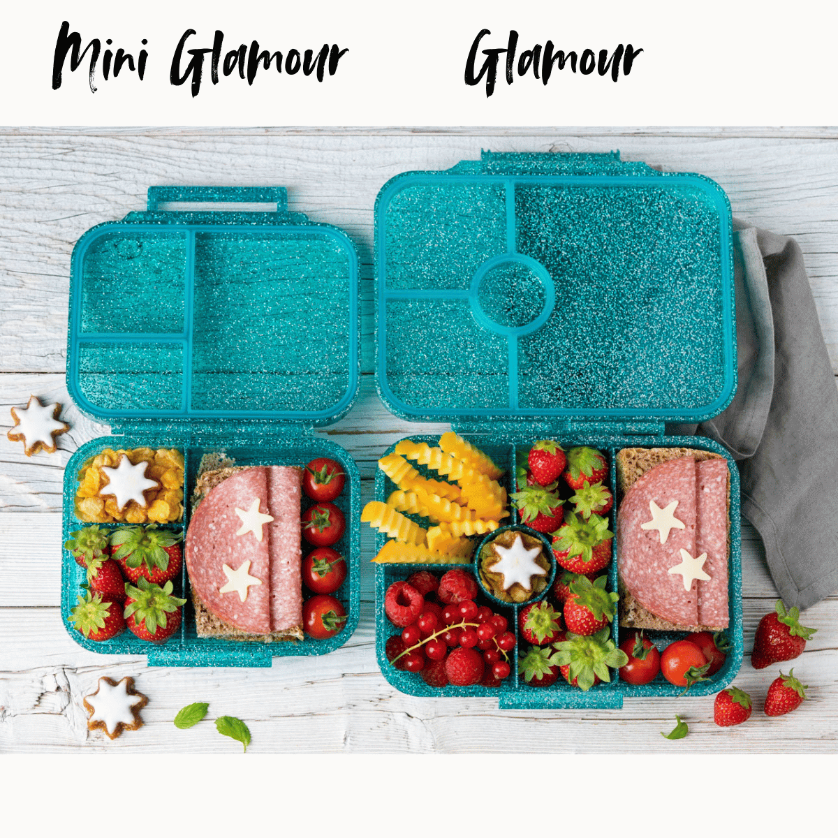 Die leuchtende, transparente Optik mit Glitzerschimmer zaubert morgens schon ein Lächeln aufs Gesicht – denn wer will schon mit grauen Dosen in die Kita oder Schule gehen, wenn man mit Stil und Glanz auffallen kann? Die Mini Glamour ist Dein täglicher Begleiter für gesunde Vespermomente voller Freude – robust, schön und einfach, damit du Dich auf das Wesentliche konzentrieren kannst: Dein Kind glücklich machen.