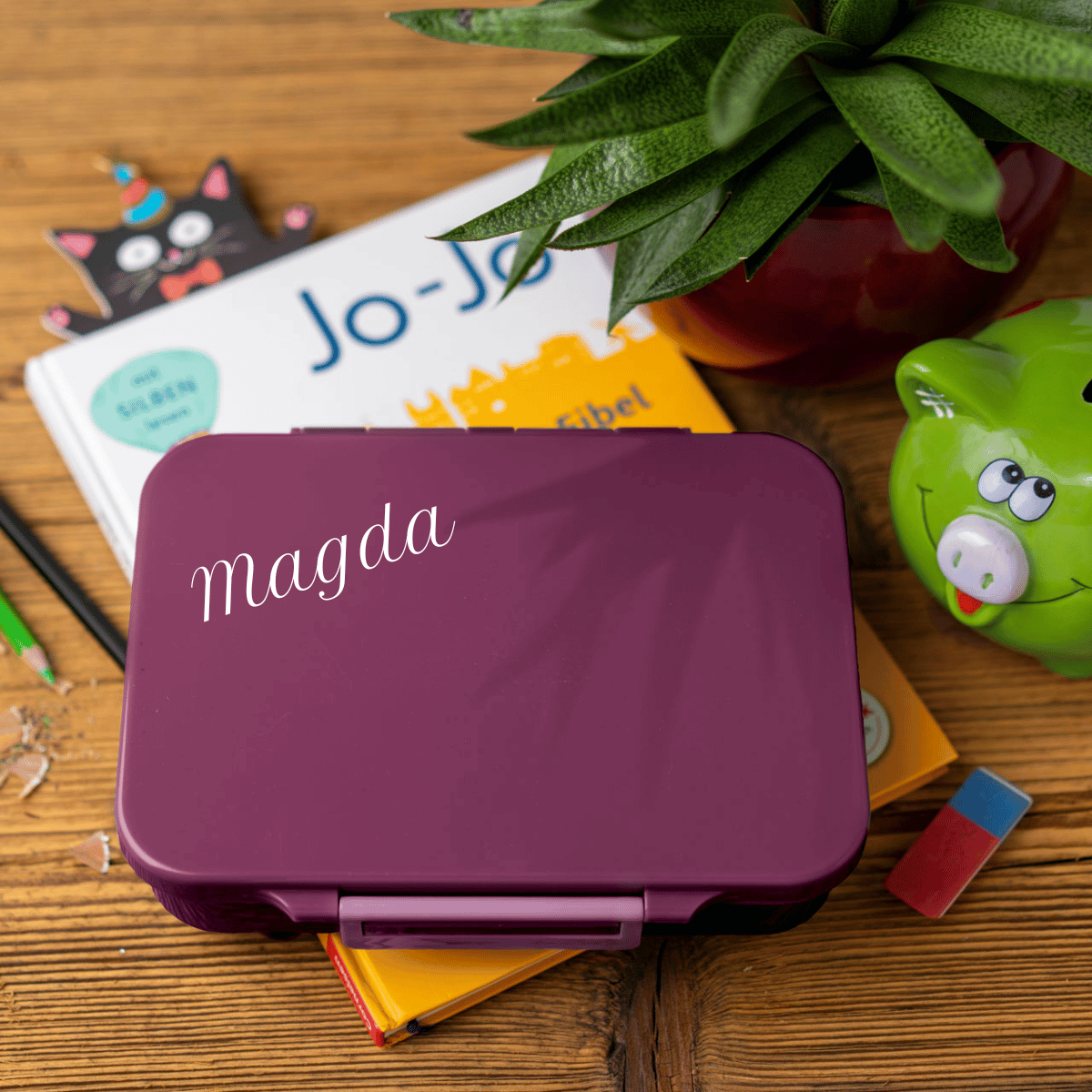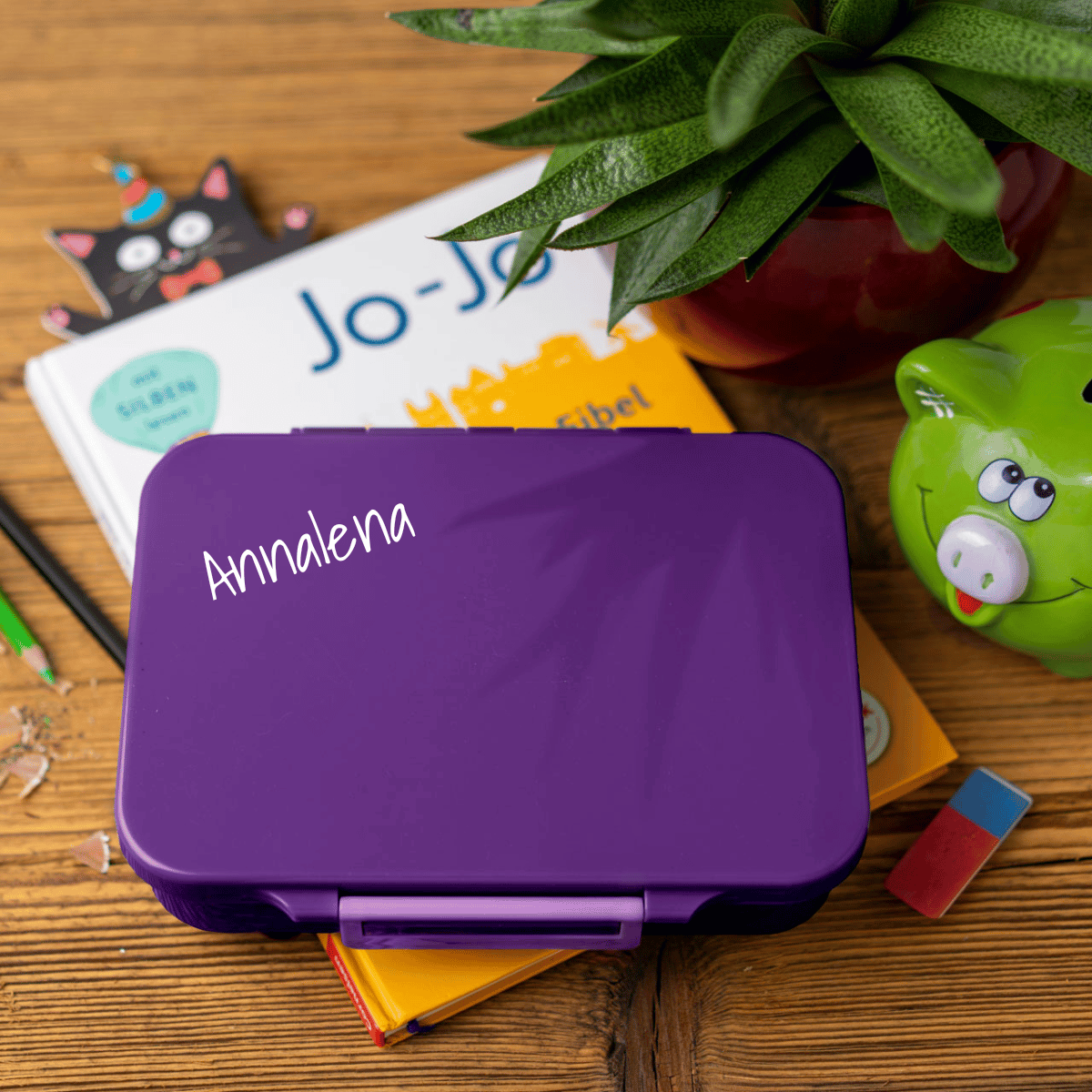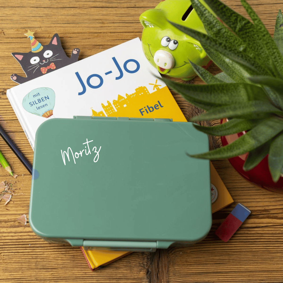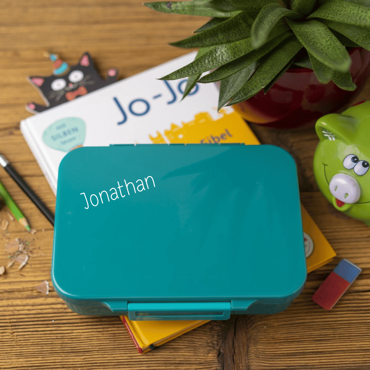 Die Lunchbox ist bewusst schlicht gehalten. Wenn Du sie etwas bunter magst, legen wir Dir die wasserfesten Lunchbox-Aufkleber von Jabalou an's Herz. Damit - und mit unserem Personalisierungsservice - kreierst Du ganz einfach ein echtes Unikat für Dein Kind.